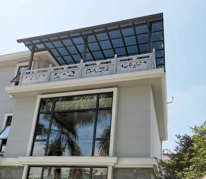 乐鱼官方网站-乐鱼leyu(中国)雨棚(A5款窗棚、露台棚)系列产品是高强度铝合金和聚碳酸酯板(耐力板)的结合。主体结构全部采用高品质、高强度铝合金材料精加工而成,具备的氧化保护能力,不生锈,表面特殊的工艺处理,大大提高了雨棚的使用寿命。顶棚耐力板的运用,能遮挡阳光中的有害紫外线对地板、墙壁、窗帘等损害;同时阻挡夏日毒辣的太阳,可以控制室内温度的上升,冷气效果也大幅度提高,从而达到节约能源的作用。