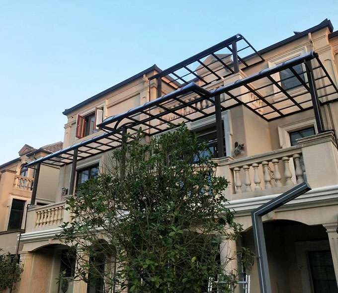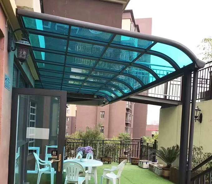 乐鱼官方网站-乐鱼leyu(中国)雨棚(A5款窗棚、露台棚)系列产品是高强度铝合金和聚碳酸酯板(耐力板)的结合。主体结构全部采用高品质、高强度铝合金材料精加工而成,具备的氧化保护能力,不生锈,表面特殊的工艺处理,大大提高了雨棚的使用寿命。顶棚耐力板的运用,能遮挡阳光中的有害紫外线对地板、墙壁、窗帘等损害;同时阻挡夏日毒辣的太阳,可以控制室内温度的上升,冷气效果也大幅度提高,从而达到节约能源的作用。